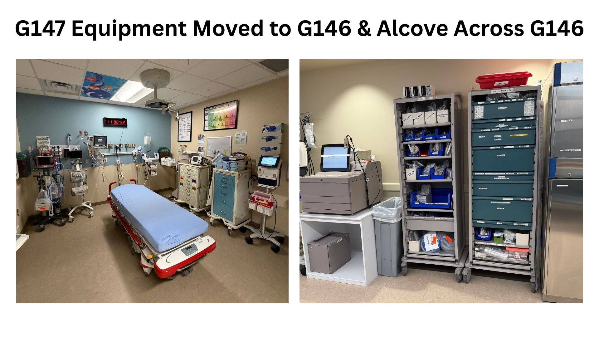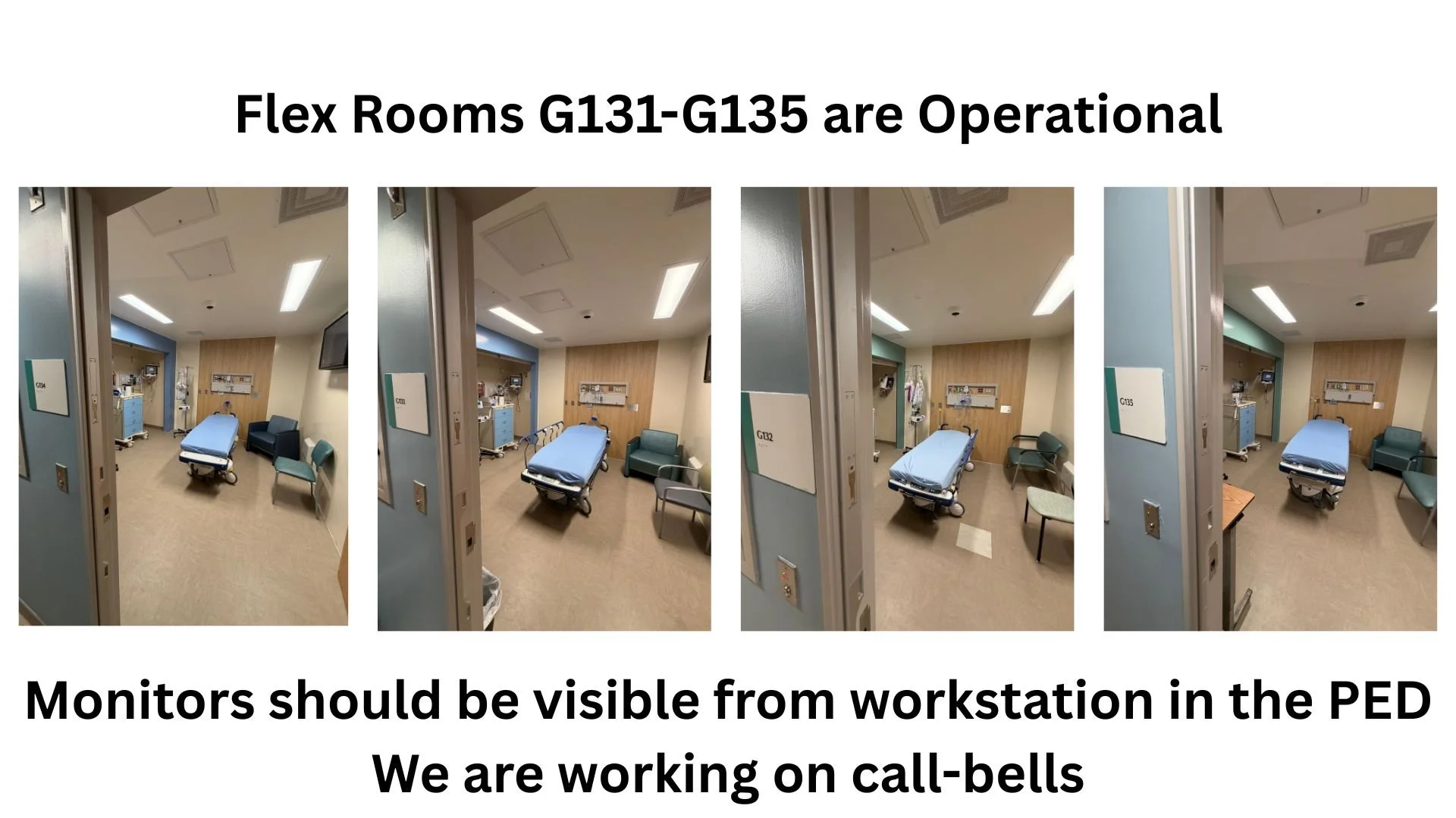 G131-135 are outfitted for use, with peds bedside carts, wall suction, etc.